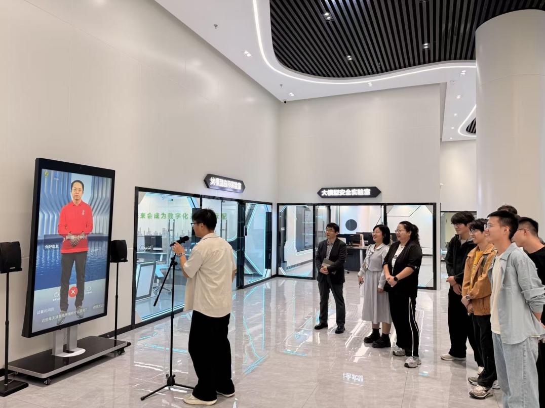 参观过程中,同学们驻足在360集团创始人周鸿祎先生的数字人屏幕前,体验与周鸿祎的数字人互动,同学们向数字人周总提出了不同编程语言在企业实践中的应用场景,以及计算机类专业的未来求职方向等问题,都得到了耐心细致有针对性的解答。