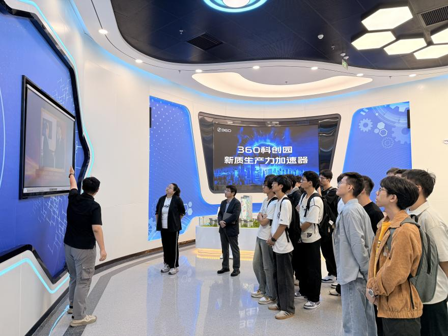 在企业讲解员的带领下,师生们先后参观了360集团天津总部的网络安全运营中心(SOC)、技术研发实验室及企业文化展示区。在网络安全运营中心,工作人员实时演示了大数据监测分析平台如何对网络攻击、数据泄露等安全风险进行精准识别与快速响应,生动展现了“数字安全大脑”在保障关键信息基础设施安全中的核心作用。同学们围绕“网络攻击防御技术”“数据隐私保护措施”等问题与技术人员展开交流,现场学习氛围浓厚。在技术研发实验室,师生们近距离接触了360集团 在人工智能算法优化、物联网安全检测等领域的最新研发项目。同学们纷纷表示,通过观摩企业的研发环境与工作模式,深刻感受到理论知识与实践应用的紧密联系,拓宽了专业视野。作为计算机专业背景的学生,大家备受鼓舞,更加明确了未来的学习方向与职业规划。