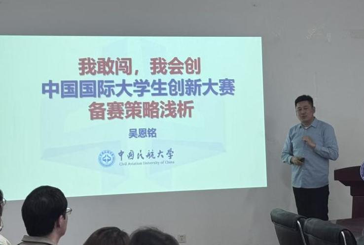 为深化创新创业教育改革,提升教师科技竞赛指导能力和人才培养质量,4月16日,我院开展高水平科技竞赛指导专题分享交流活动。本次活动邀请中国国际大学生创新大赛国家级金奖团队指导教师、中国民航大学工程技术训练中心吴恩铭、张超两位老师就竞赛组织与项目培育作专题分享。学院党委书记李伟、青年教师、辅导员参加活动,副院长张艳主持。