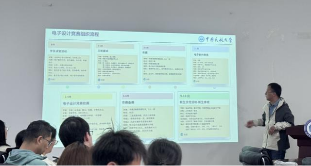 吴恩铭老师结合自身十余年竞赛指导经验,围绕中国国际大学生创新大赛、电子设计竞赛两大核心赛事展开讲解。他首先梳理了赛事发展历程与评审导向,强调“以赛促教、以赛促学、以赛促创”的核心理念,指出竞赛不仅是学生能力的试金石,更是教师教学改革的“助推器”。在备赛策略环节,从项目选题、团队组建、材料打磨三个维度分享实操方法。