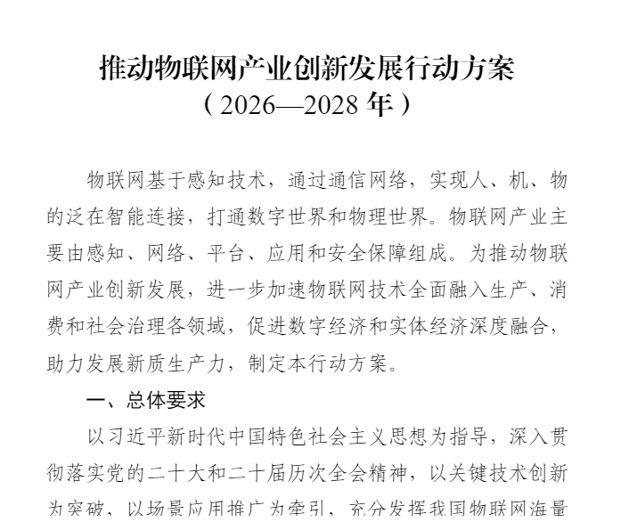 工业和信息化部等九部门关于印发《推动物联网产业创新发展行动方案(2026—2028年)》的通知